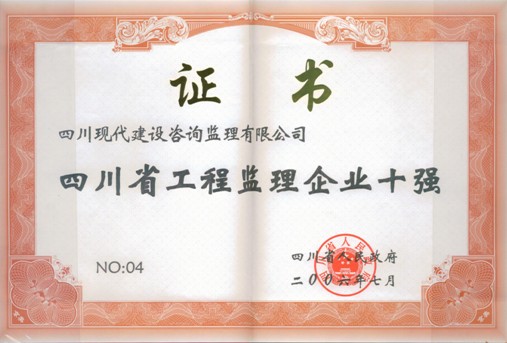 四川现代建设咨询有限公司荣获四川省工程监理企业十强